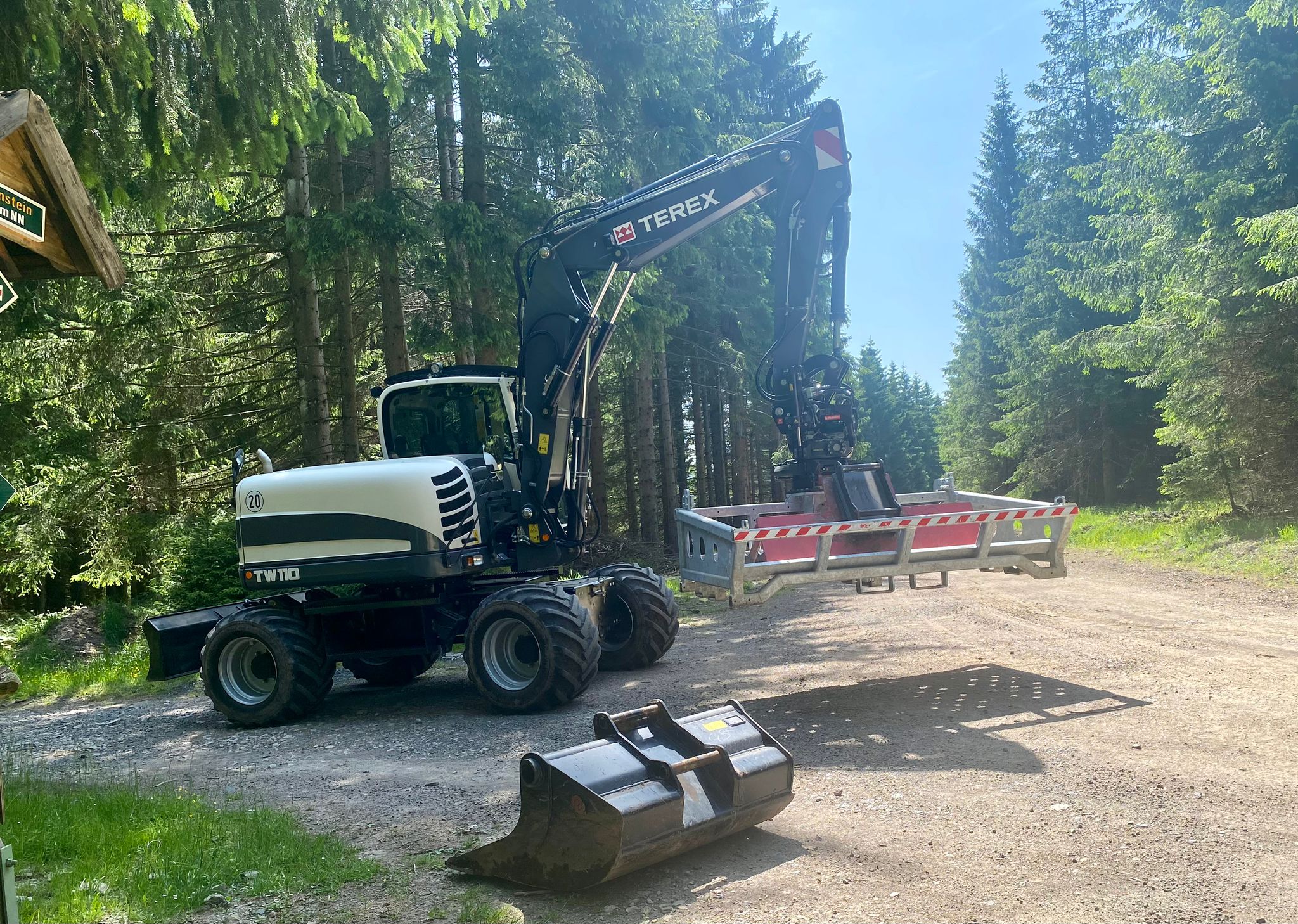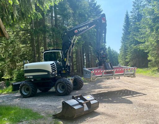 Our excavator bucket box is perfect for transporting excavator buckets, shears and attachments. It is easily attached to two hooks on the excavator blade or dozer blade. With a width of 1250-3000 mm and excavator mounts directly on the excavator bucket box, excavator attachments such as excavator buckets, levelling beams or digging rakes can also be transported: Simply load the excavator attachments onto the box, lash them to the lashing points and off you go! The excavator bucket box is ideal for levelling and cleaning work in agriculture, forestry and on construction sites. Simply anywhere where materials such as excavator buckets etc. need to be transported quickly and efficiently and where a high degree of flexibility is required. ‘Replaces the transport trailer, I think this is super handy!’